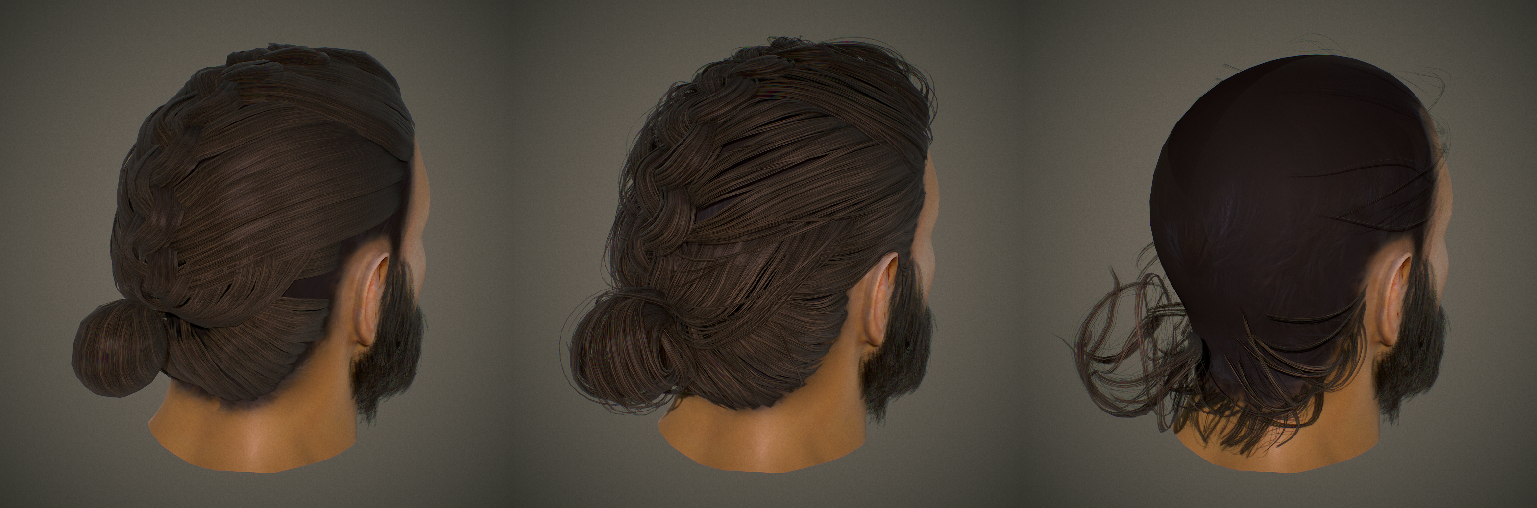 특히 헤어 부분이 그렇습니다. 원래도 헤어 제작을 힘들어 하는 편이었는데 이번 작업은 땋은머리+올백이라는 듣도보도 못한 스타일을 가지고 있었습니다. 헤어 구조를 정확히 파악하고 결정하는 데에만 수 일을 소요하고 여러번 재시도하였고, 폴리곤 정보에 헤어 카드메쉬를 제외한 것을 보시면 눈치챌수도 있지만 최적화는 완전히 실패했다고 생각합니다.