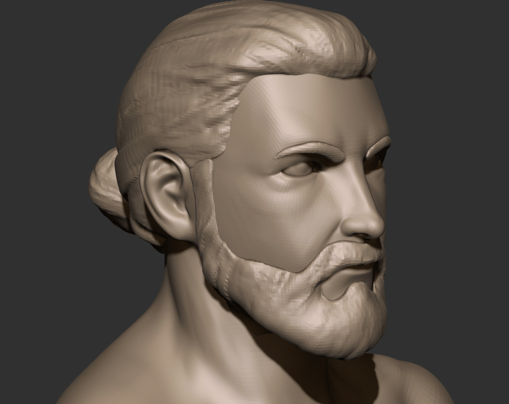 일단 여기에서 마무리 해 줍니다. 친구들에게 조언을 구하니 원화에 비해 굴곡이 약간 부드러워 보인다는 의견을 받았습니다. 간단한 노말 수정은 베이크를 다시 하지 않아도 서브스탠스 페인터에서 가능하니 일단 헤어와 수염 작업도 해 준다음에 느낌을 다시 확인해보기로 했습니다.