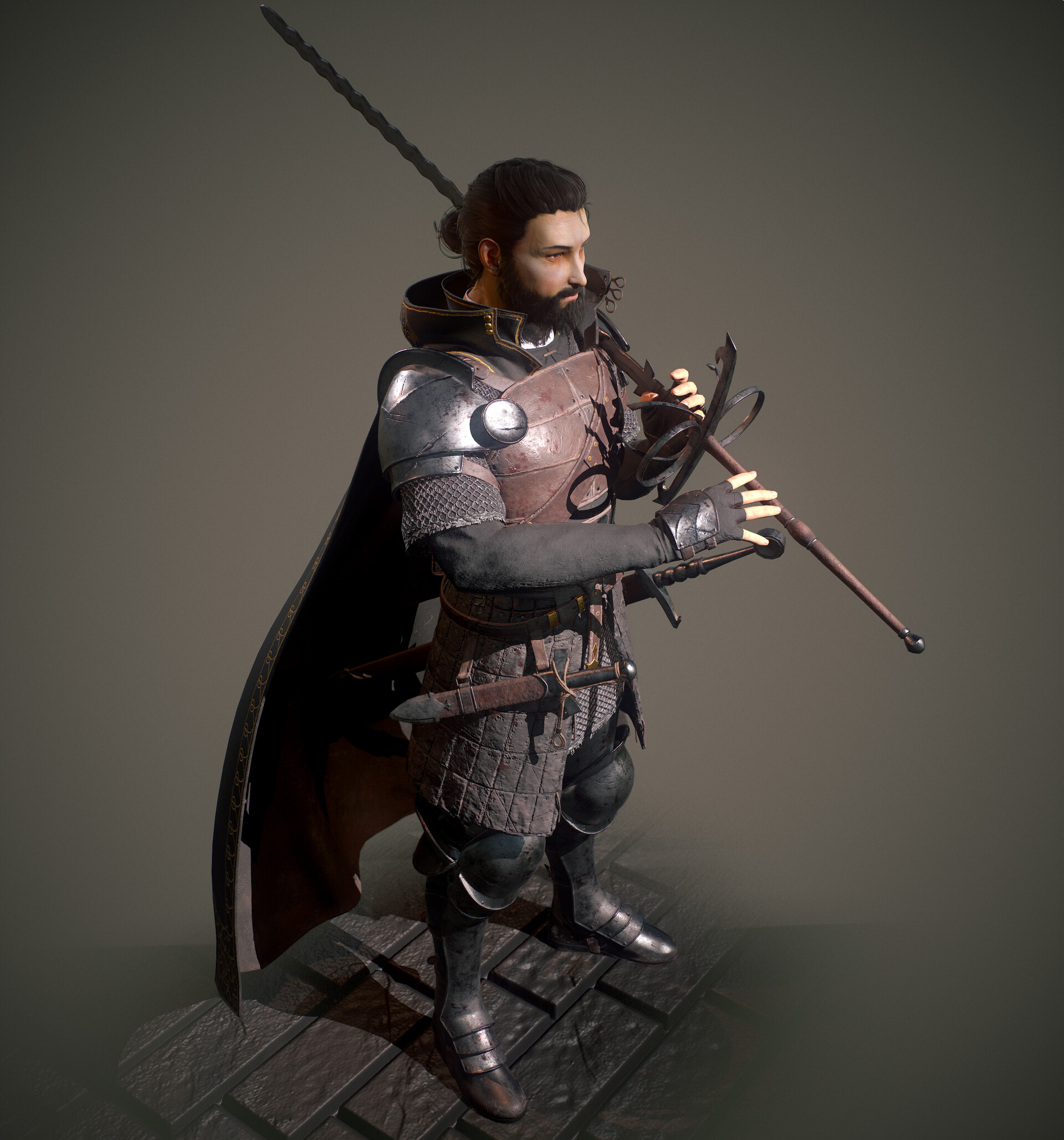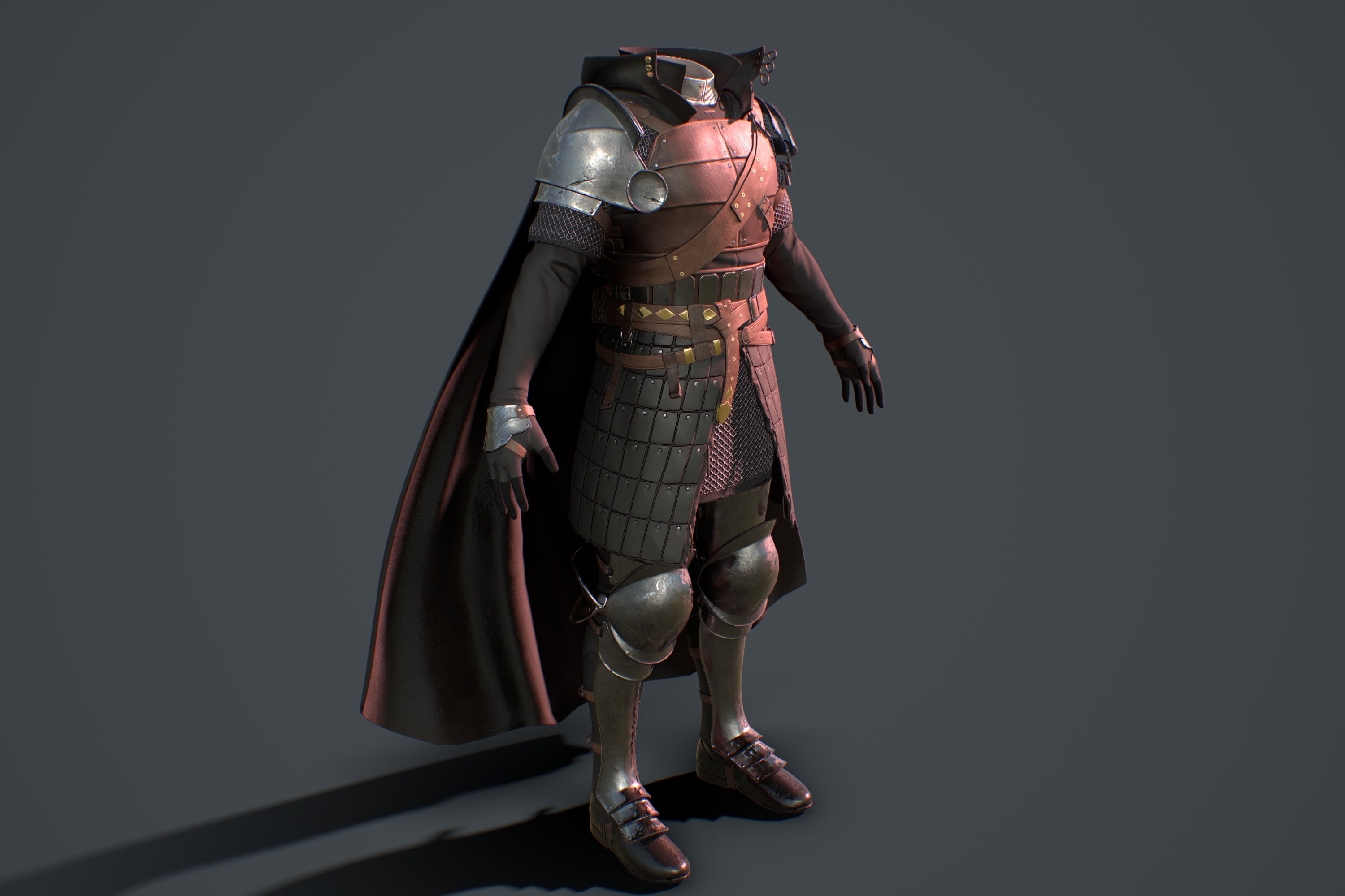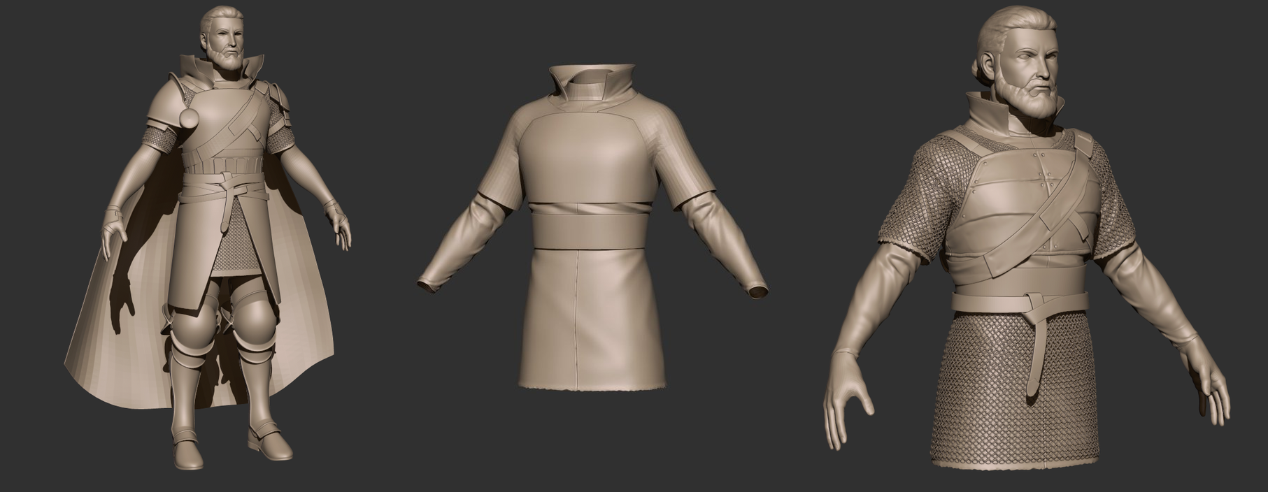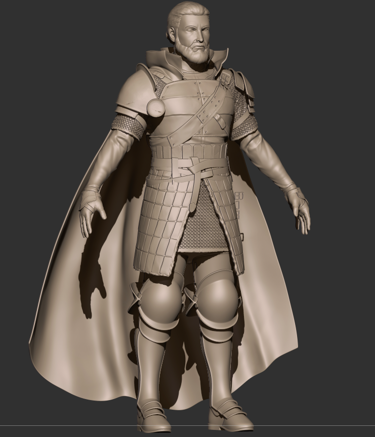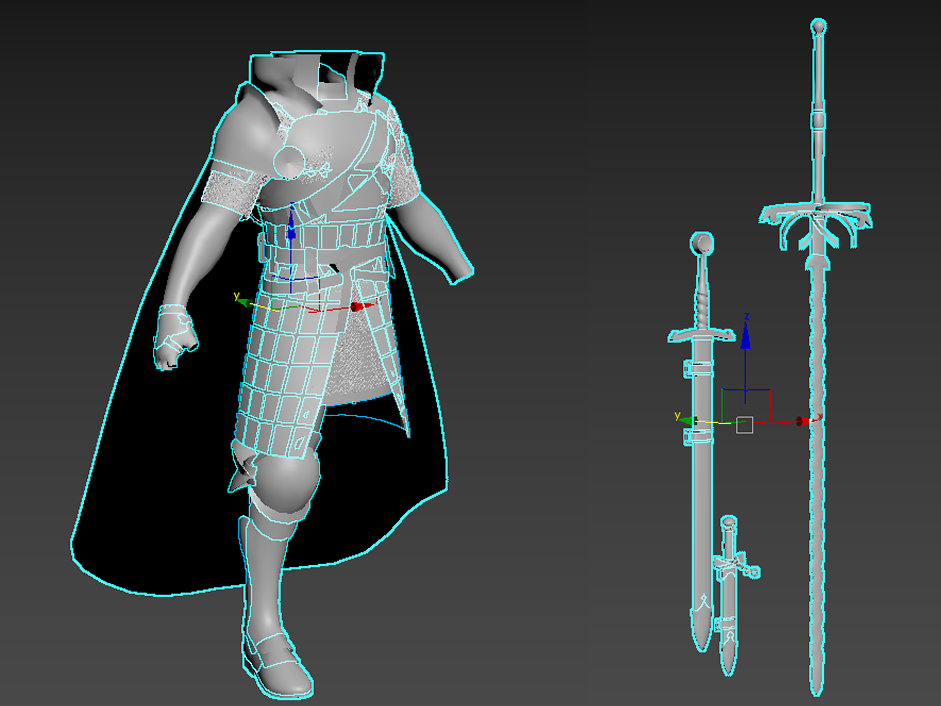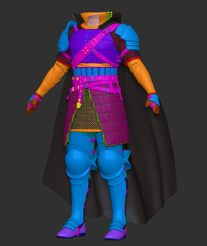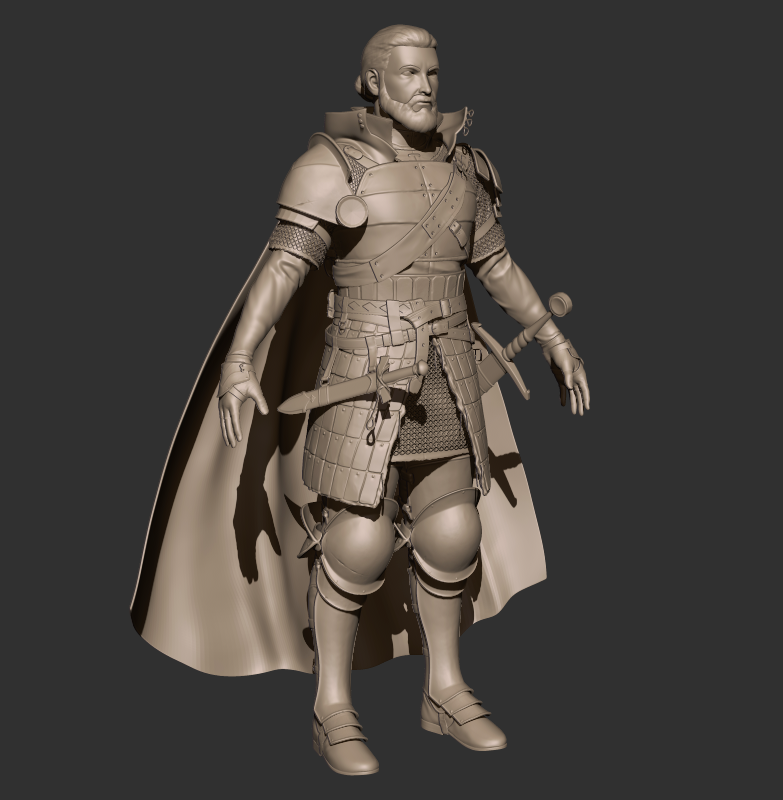 무기를 포함해 전신의 베이스 메쉬가 준비되었습니다. 작은 단추나 버클 등은 추후에 공용으로 사용할 메쉬를 만들 예정입니다.