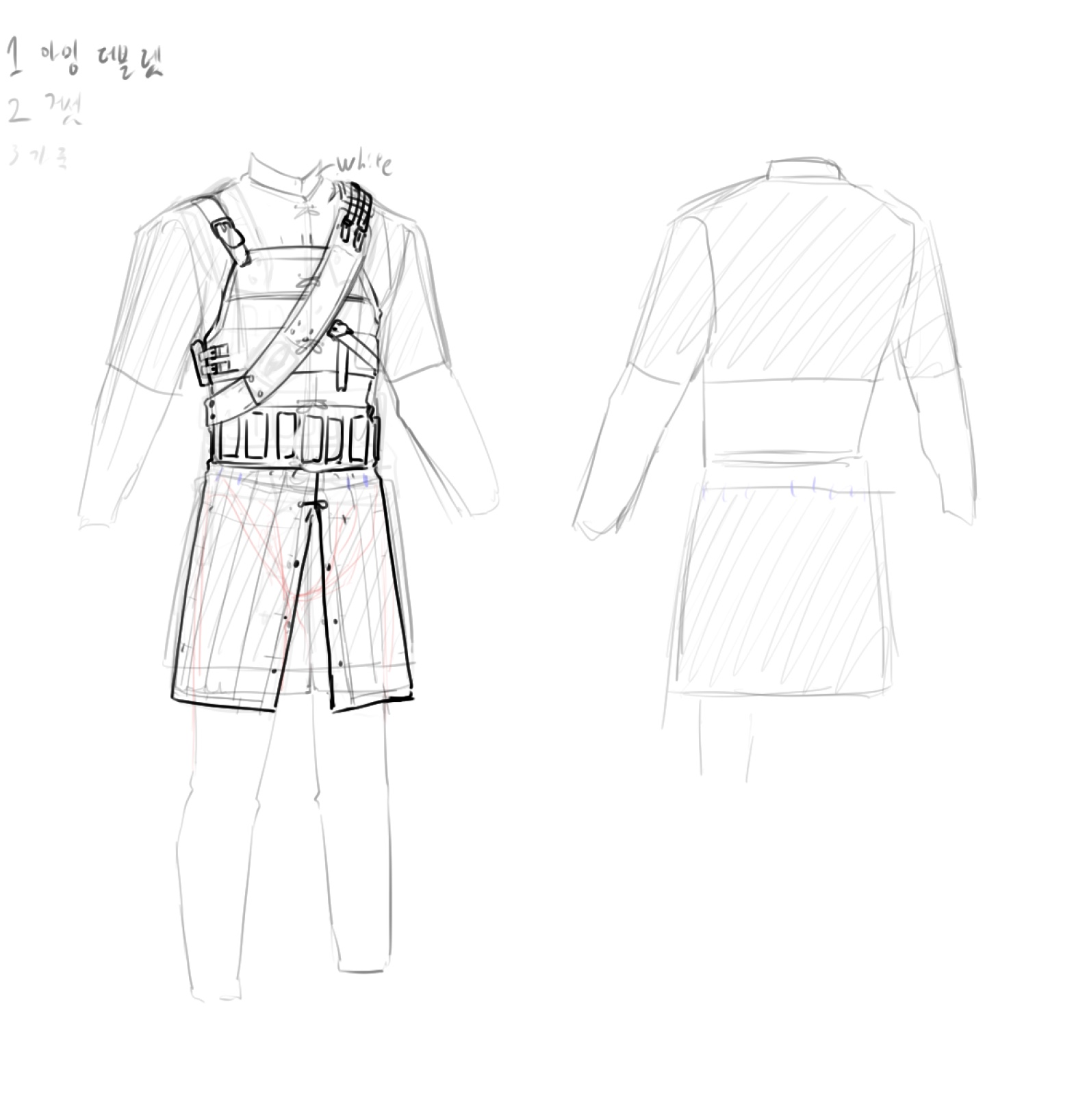 겹쳐놔서 보기 힘들긴 하지만, 어차피 지금 제가 그린 자료를 볼 사람은 저뿐이므로 상관없겠죠. 아무튼 최소한의 부분들을 직접 그려보고, 자료로 해결할 수 있는 부분들은 필요한 검색어들을 메모해 놓았습니다.