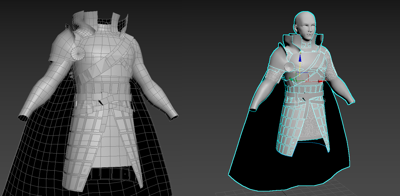 이 포스팅에 일일히 업데이트하진 않았지만 시간 나는대로 조금씩 작업을 해왔습니다. 무기 제외한 의상 부분은 거의 완료된 단계입니다. 아쉬운점이 몇가지 있는데 지금와서 어떻게 해결할 수 있는 부분은 아니고 모델링을 완전히 마치고 어떤거였는지 풀어보는걸로 하겠습니다.