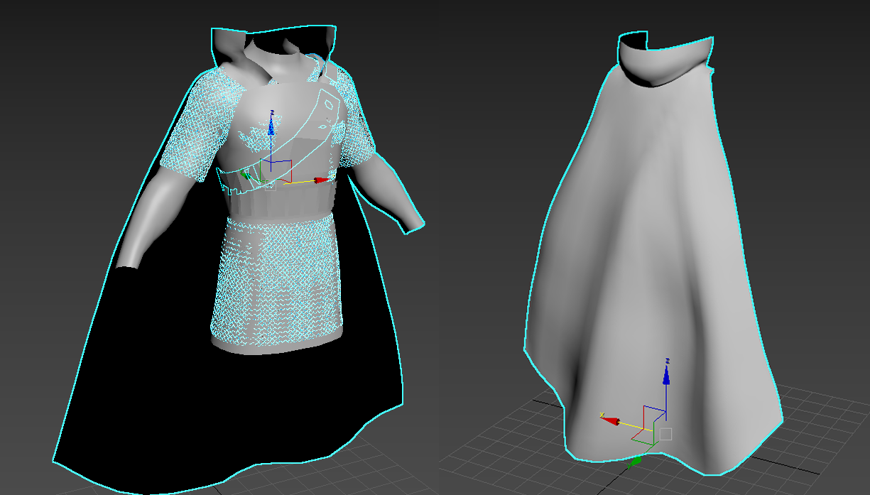 열심히 합니다. 망토는 맥스에서 형태만 만든 후 지브러시로 옮겨서 디바이드를 올리며 간단한 주름 작업 후 다시 맥스로 불러왔습니다.