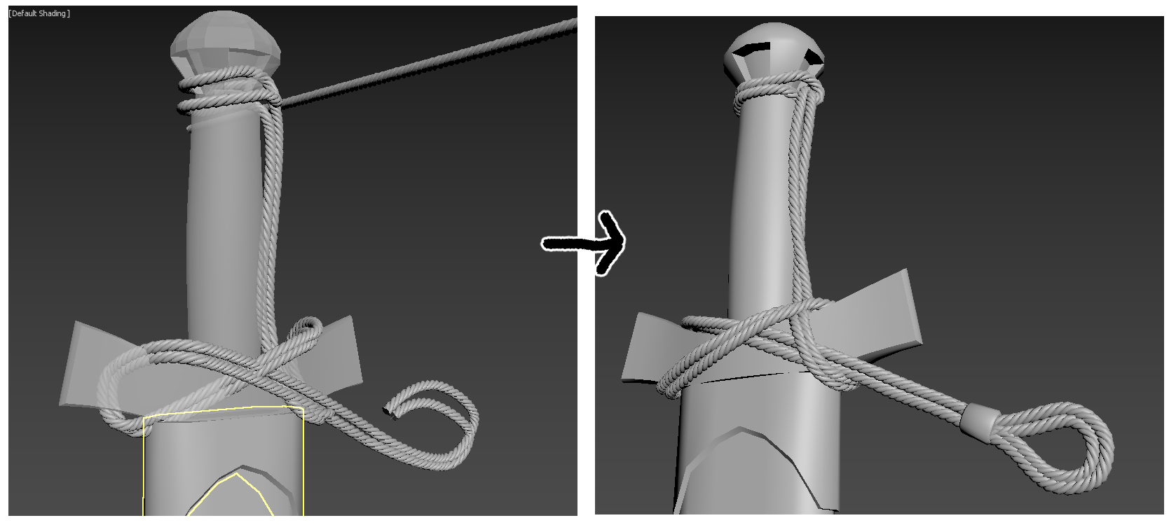 두께를 주고 모서리를 정리한 후 turbosmooth를 적용해 지브러쉬에서 묘사가 가능한 상태로 만들어줍니다.