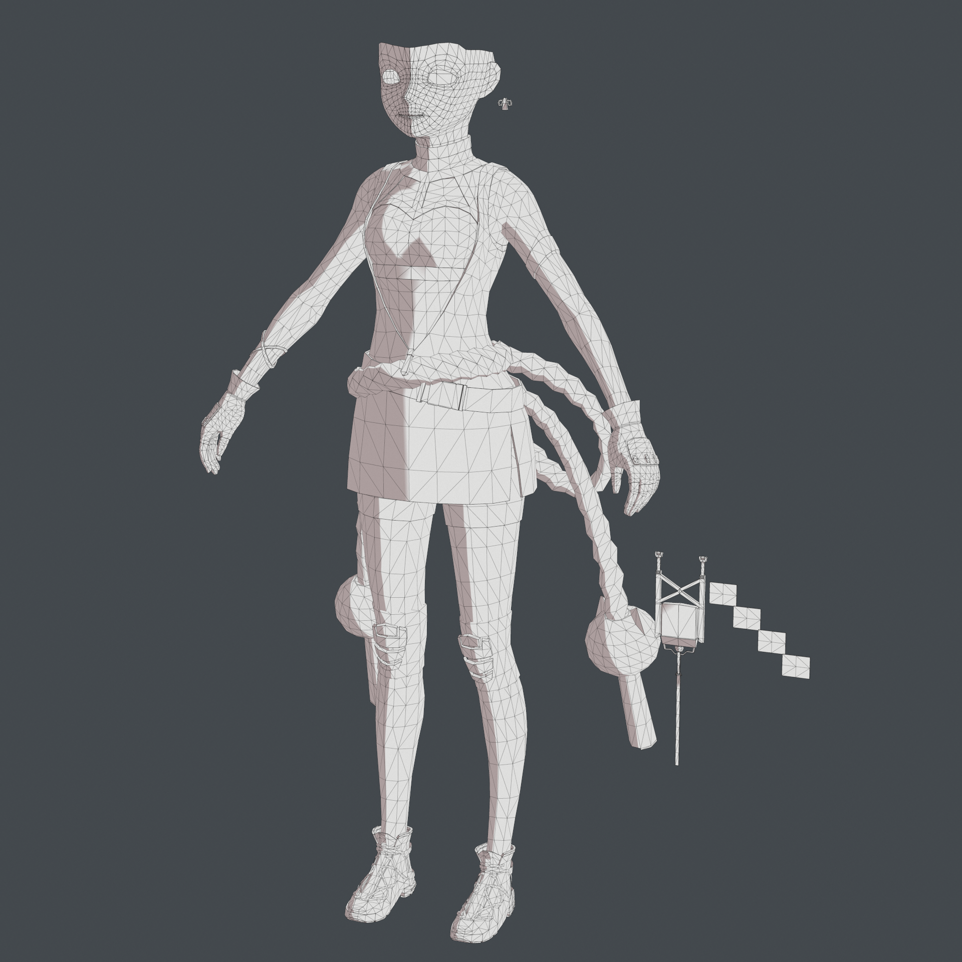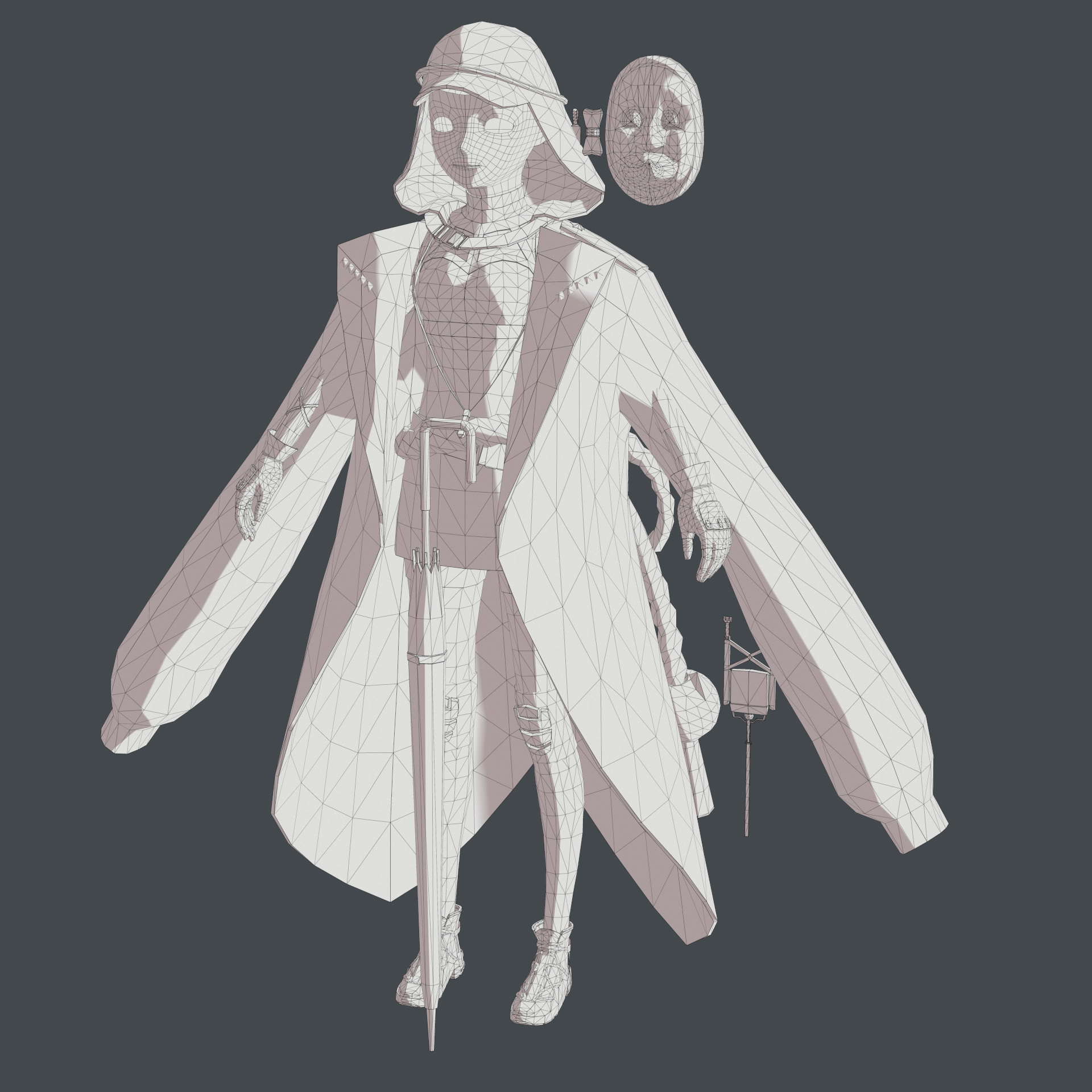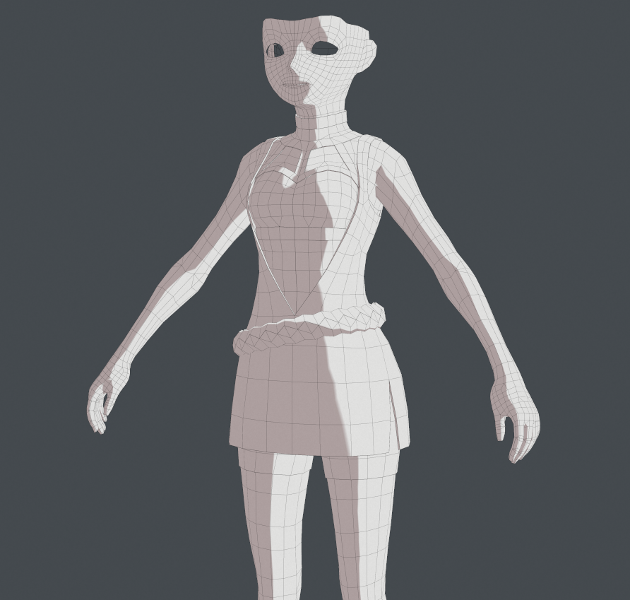 눈, 헤어와 헤어 액세서리를 제외한 기본 모델링이 완료되었습니다. 이제 약간의 주름 등을 표현하고 스무딩 그룹을 설정, 폴리곤 갯수 최적화를 진행합니다.