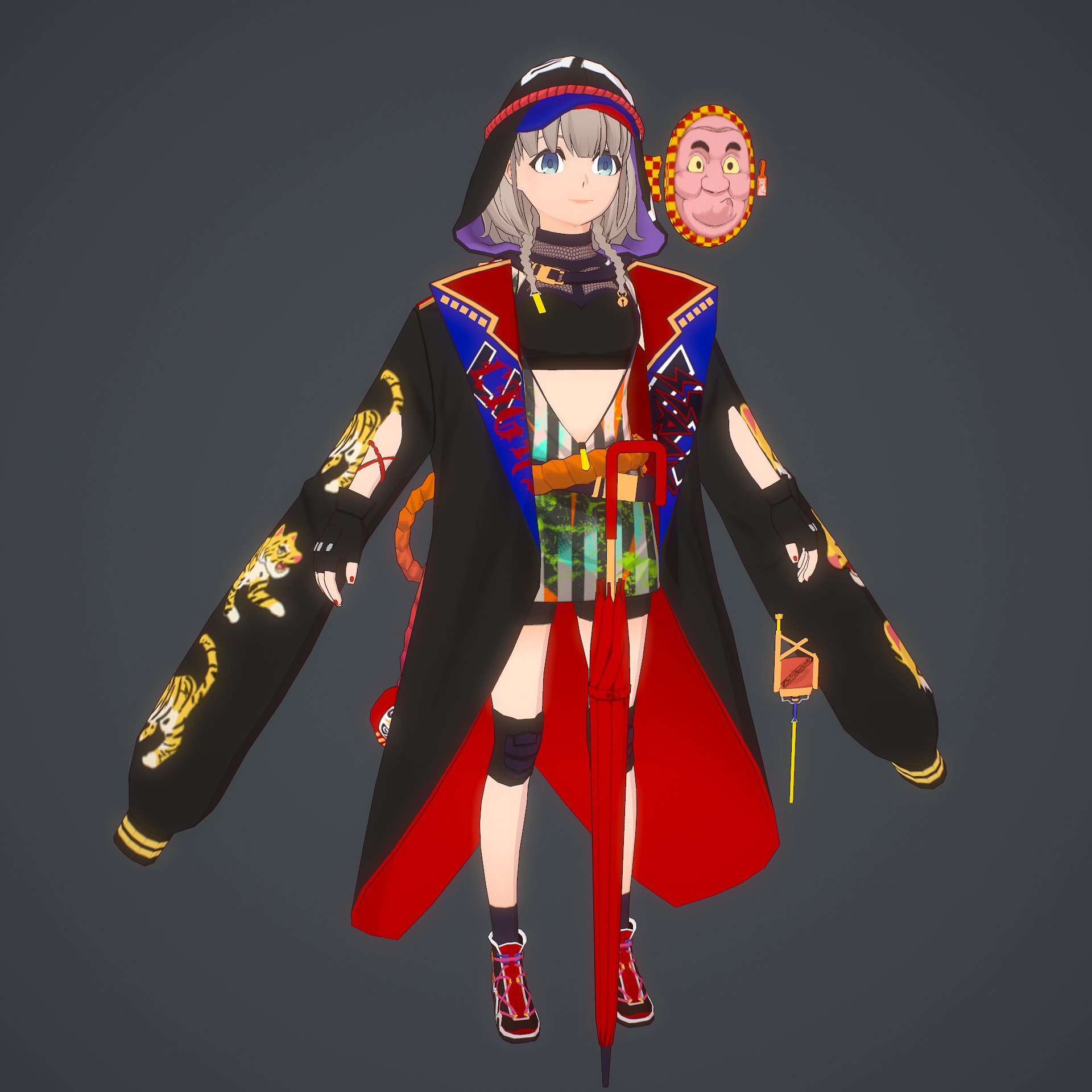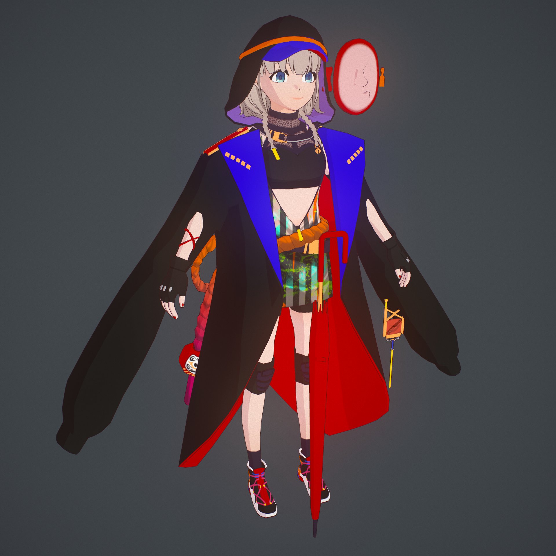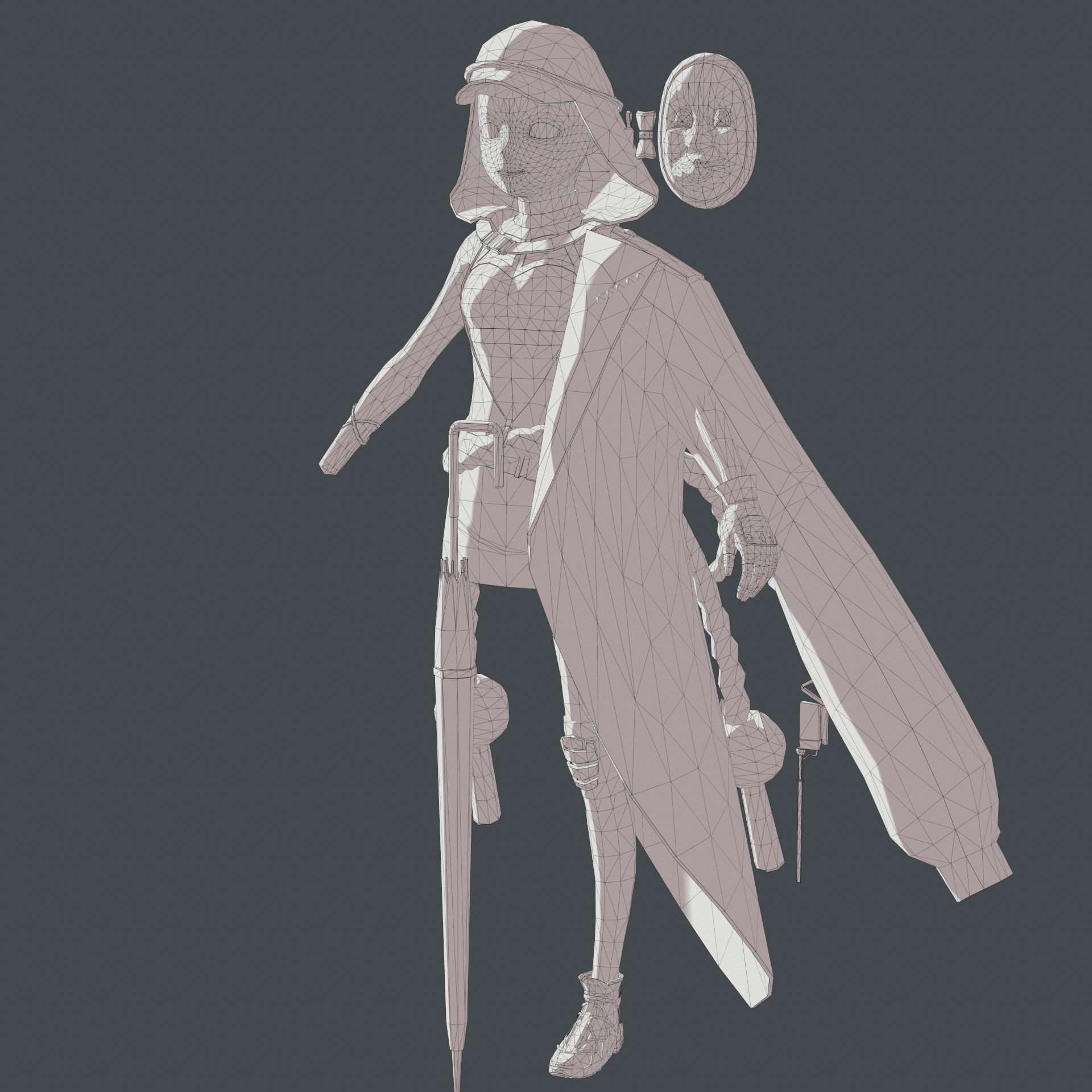 눈, 헤어와 헤어 액세서리를 제외한 기본 모델링이 완료되었습니다. 이제 약간의 주름 등을 표현하고 스무딩 그룹을 설정, 폴리곤 갯수 최적화를 진행합니다.