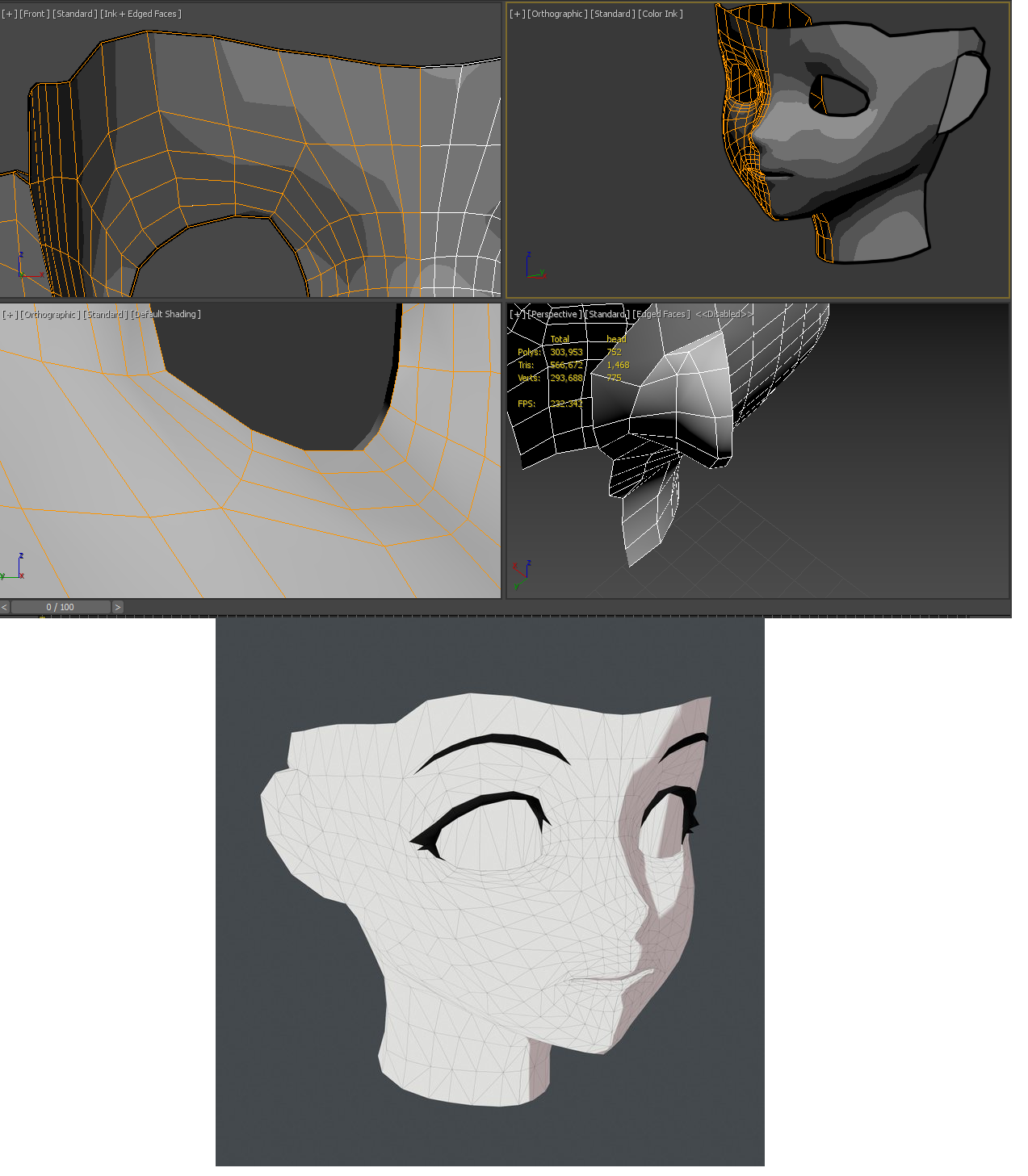 오브젝트 개수만의 문제도 아닌 것이 얼굴의 그림자 형태 때문에 계속 삽질을 한 게 치명적인것 같네요.